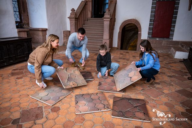 Die Verfolgungsjagd auf Burg Kriebstein ist ein multimediales Abenteuer für die gesamte Familie. Begebt euch auf einen spannenden Rundgang durch die historischen Räume, lernt spielerisch die bewegte Geschichte der Ritterburg kennen und fördert eure Teamfähigkeiten. Das Beste: Niemand geht leer aus. Am Ende eurer Reise erwartet euch noch eine kleine Überraschung. Museum meets Escape Game – das gibt es nur im Schlösserland Sachsen!